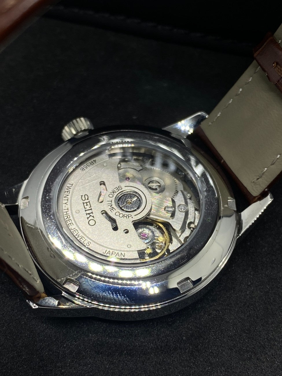 En su interior, late el movimiento automático Seiko NH38, símbolo de fiabilidad y precisión japonesa, visible a través de su fondo de caja transparente. Cada unidad está ensamblada a mano por expertos, reflejando la atención al detalle que distingue a RCB Mods.