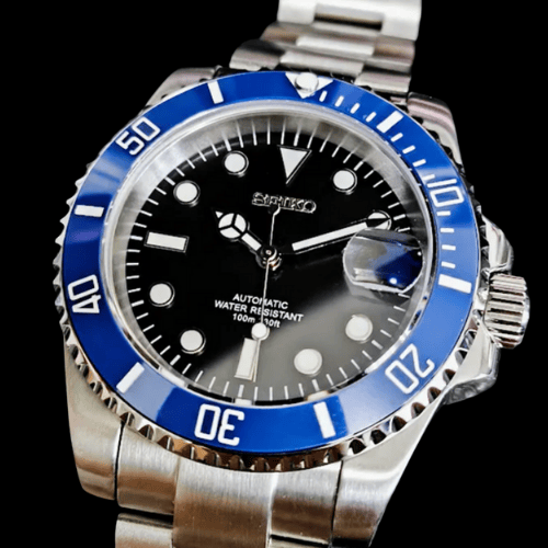 Impactante y moderno, el Seikomariner Cookie Monster Seiko Mod combina lujo, estilo y personalidad. Su dial azul vibrante y bisel cerámico azul captan todas las miradas, mientras que la correa Oyster en acero 904L garantiza elegancia y resistencia. El cristal de zafiro anti-arañazos protege la pieza, asegurando durabilidad y claridad total.