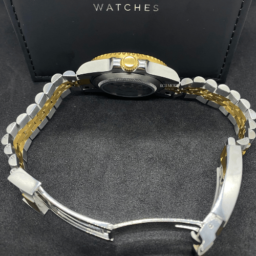 La GMT Zombie Mod est une montre qui respire le luxe et impose le respect . Sa lunette en céramique noire et or, symbole de puissance et d'exclusivité, crée un contraste saisissant avec le cadran noir profond , ajoutant sophistication et lisibilité optimale . Chaque détail de ce design allie une élégance moderne à un style intemporel , faisant de cette montre un accessoire à la présence indéniable.