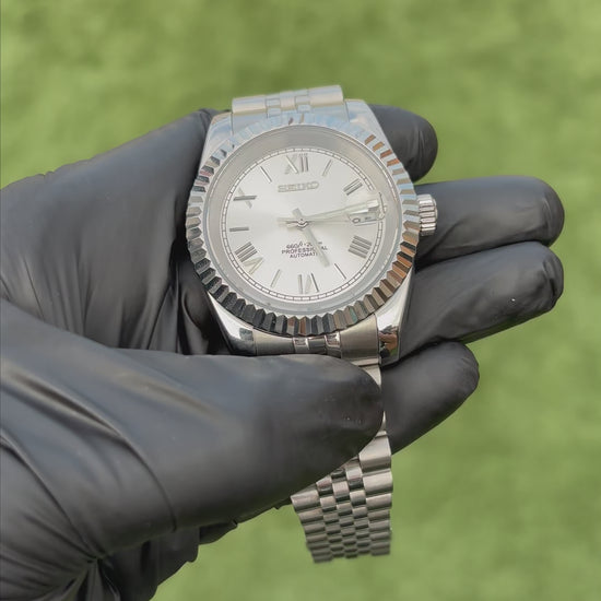 Construido en acero inoxidable 904L y potenciado por el prestigioso movimiento Seiko NH35 automático, este modelo combina tradición relojera con la solidez y precisión que exigen los más exigentes. Cada detalle, desde el brillo de la caja hasta el acabado impecable del brazalete, refleja lujo discreto y personalidad única.