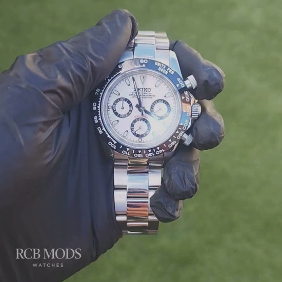 Cada unidad está montada a mano, asegurando exclusividad, detalle y carácter. El Seiko Mod Daytona Panda no es solo un reloj: es una declaración de estilo con alma deportiva.