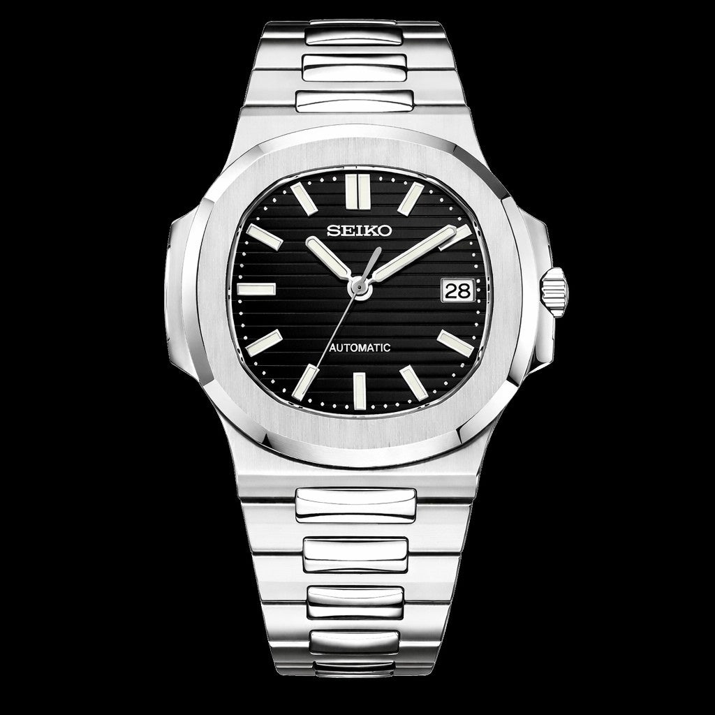 Impulsado por el movimiento automático Seiko NH35, reconocido por su fiabilidad y suavidad, este modelo garantiza precisión en cada segundo. Su cristal de zafiro anti-arañazos con tratamiento antirreflectante aporta máxima claridad y durabilidad, mientras que la correa de acero 904L refuerza la robustez y el estilo de alto nivel que definen a esta pieza.