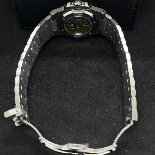 Diseñado para quienes buscan un reloj llamativo pero sofisticado, este modelo combina materiales de máxima calidad con una mecánica fiable. La correa de acero 904L asegura resistencia y durabilidad, el cristal de zafiro anti-arañazos mantiene la nitidez impecable, y el movimiento automático Seiko NH38 garantiza precisión y fiabilidad, visible a través de su ventana open-heart.