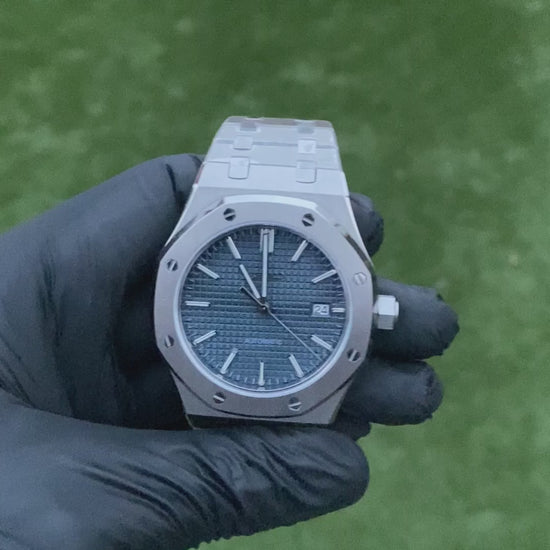 El Royal Seikoak Blue Seiko Mod es un reloj que combina elegancia y sofisticación deportiva. Su icónica caja octogonal de 41 mm en acero inoxidable 904L aporta presencia y resistencia, mientras que el dial azul intenso crea un contraste elegante con los detalles metálicos, ofreciendo máxima legibilidad y estilo atemporal. Cada elemento de este reloj refleja un diseño cuidado para quienes buscan un accesorio premium y versátil.
