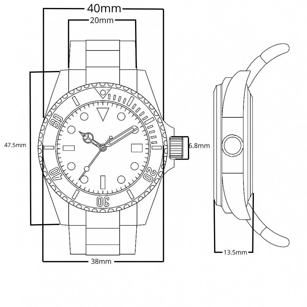 · Diámetro: 40 mm (sin incluir la corona), perfecto equilibrio entre presencia y comodidad