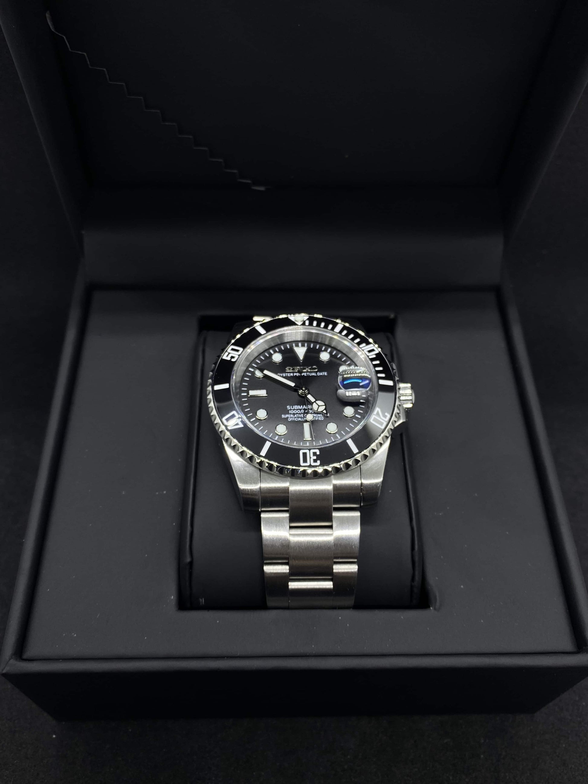 Imponente, sofisticado y atemporal: el Seikomariner Black Seiko Mod es un reloj montado a mano que combina estilo y funcionalidad. Su dial negro profundo y bisel cerámico transmiten elegancia y carácter, mientras que el acero 904L y el cristal de zafiro anti-arañazos aseguran durabilidad y resistencia.