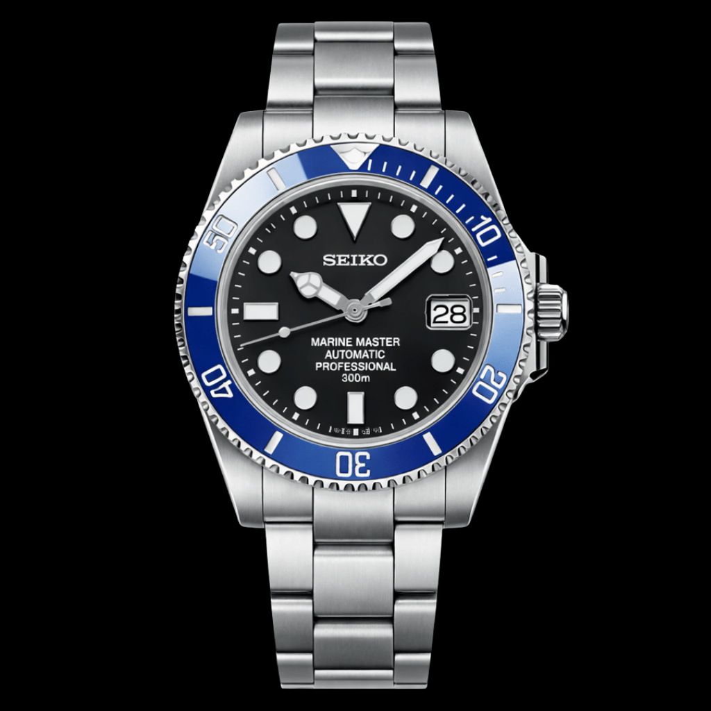 Impactante y moderno, el Seikomariner Cookie Monster Seiko Mod combina lujo, estilo y personalidad. Su dial azul vibrante y bisel cerámico azul captan todas las miradas, mientras que la correa Oyster en acero 904L garantiza elegancia y resistencia. El cristal de zafiro anti-arañazos protege la pieza, asegurando durabilidad y claridad total.