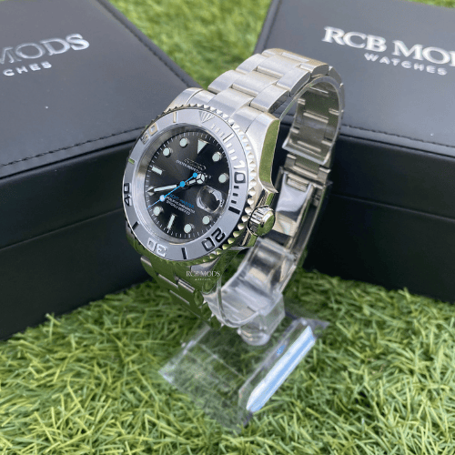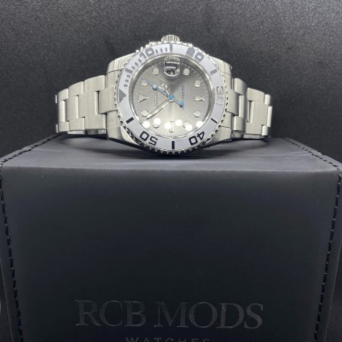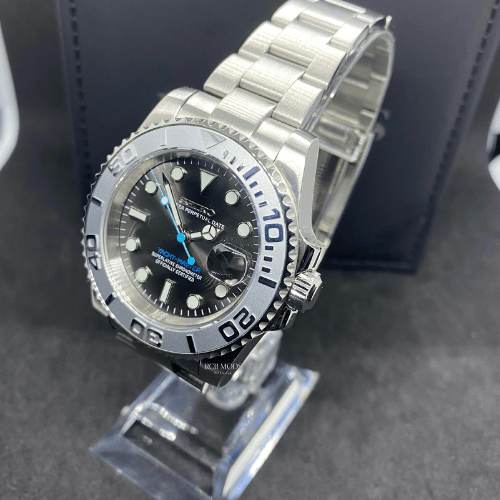 Equipado con el movimiento automático Seiko NH35, este reloj garantiza precisión y fiabilidad. Cada unidad es ensamblada a mano por expertos, reflejando el nivel de detalle y exclusividad que caracteriza a RCB Mods. Una obra que combina la tradición relojera con un estilo moderno y premium.